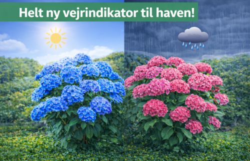 Når solen får overtaget på himlen, viser blomsterne sig i friske blå nuancer. Og når regnskyerne trækker ind, skifter de til lyserøde toner. En lille vejrindikator midt i haven.